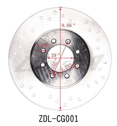 Outside Diameter: 8.66". Inside Diameter: 2.29". Thickness: 0.16". Bolt hole spacing:2.235"